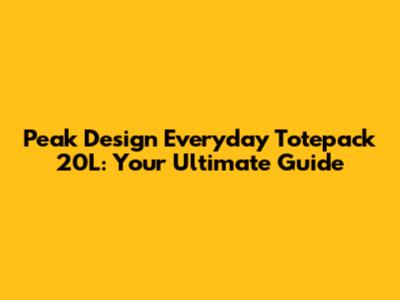 Peak Design Everyday Totepack 20L: Your Ultimate Guide