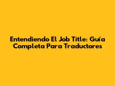 Entendiendo El Job Title: Guía Completa Para Traductores