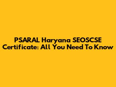 PSARAL Haryana SEOSCSE Certificate: All You Need To Know