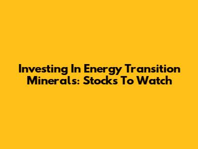 Investing In Energy Transition Minerals: Stocks To Watch