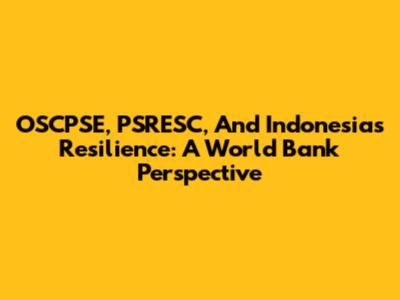 OSCPSE, PSRESC, And Indonesia's Resilience: A World Bank Perspective