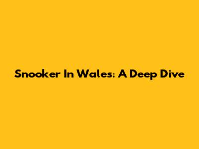 Snooker In Wales: A Deep Dive