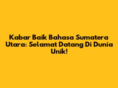 Kabar Baik Bahasa Sumatera Utara: Selamat Datang Di Dunia Unik!