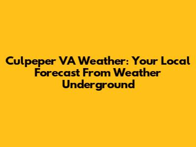 Culpeper VA Weather: Your Local Forecast From Weather Underground