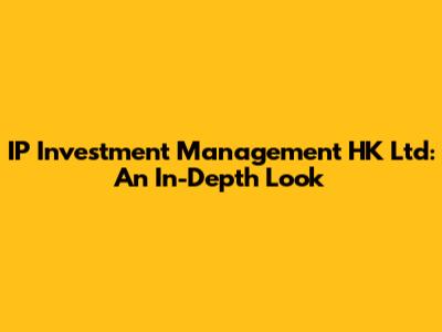 IP Investment Management HK Ltd: An In-Depth Look