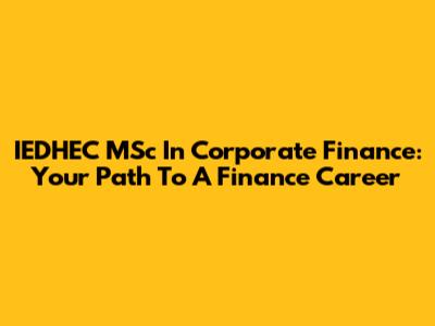 IEDHEC MSc In Corporate Finance: Your Path To A Finance Career