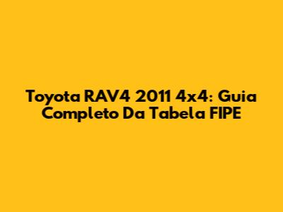 Toyota RAV4 2011 4x4: Guia Completo Da Tabela FIPE