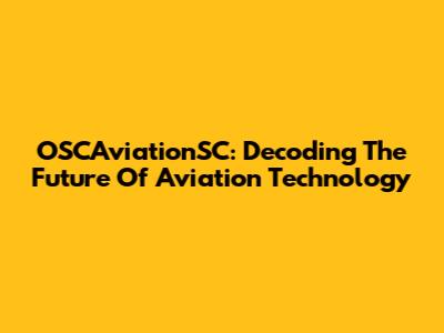 OSCAviationSC: Decoding The Future Of Aviation Technology