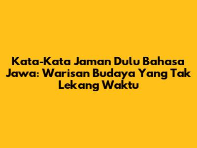 Kata-Kata Jaman Dulu Bahasa Jawa: Warisan Budaya Yang Tak Lekang Waktu