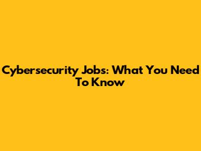 Cybersecurity Jobs: What You Need To Know