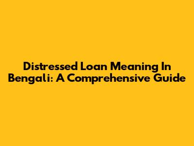 Distressed Loan Meaning In Bengali: A Comprehensive Guide