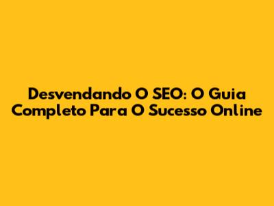 Desvendando O SEO: O Guia Completo Para O Sucesso Online