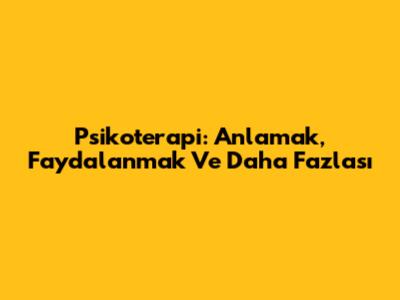 Psikoterapi: Anlamak, Faydalanmak Ve Daha Fazlası
