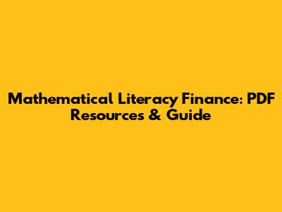 Mathematical Literacy Finance: PDF Resources & Guide