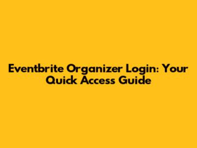Eventbrite Organizer Login: Your Quick Access Guide