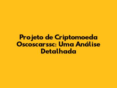 O Que é o Projeto de Criptomoeda Oscoscarssc?