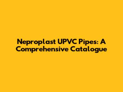 Neproplast UPVC Pipes: A Comprehensive Catalogue