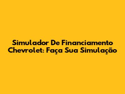 Simulador De Financiamento Chevrolet: Faça Sua Simulação