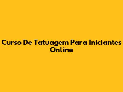 Curso De Tatuagem Para Iniciantes Online