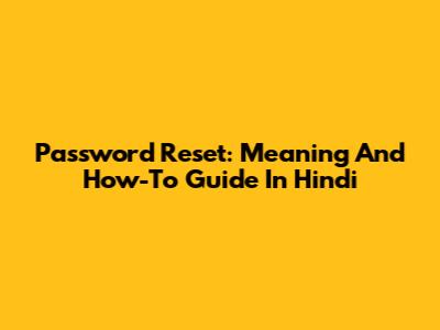 Password Reset: Meaning And How-To Guide In Hindi