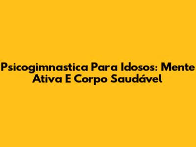Psicogimnastica Para Idosos: Mente Ativa E Corpo Saudável